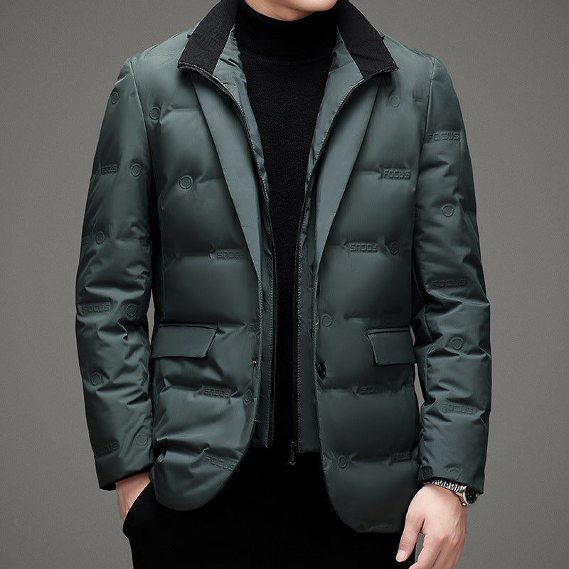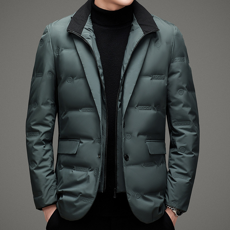 For the man whose day demands both polish and practicality. We merged the sharp lines of a classic blazer with the essential warmth of a technical down jacket. Its insulated, weather-resistant design offers a refined solution to navigating the city in complete comfort and style.